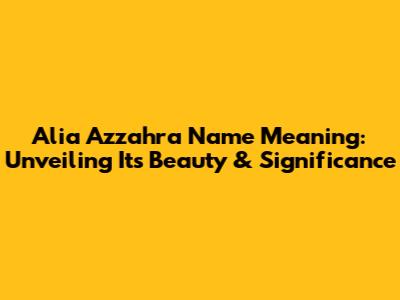 Alia Azzahra Name Meaning: Unveiling Its Beauty & Significance